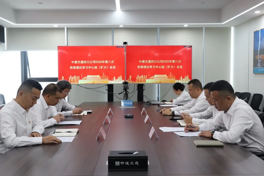 近日,中建交通四川公司召开2025年第八次党委理论学习中心组(扩大)会,聚焦“传承伟大抗战精神 凝聚实干奋进力量”主题,重温抗战历史,深入学习有关抗战精神重要论述,深刻把握爱国情怀、民族气节、英雄气概和必胜信念。公司党委书记、执行董事郭猛主持会议,党委理论中心组成员参加。