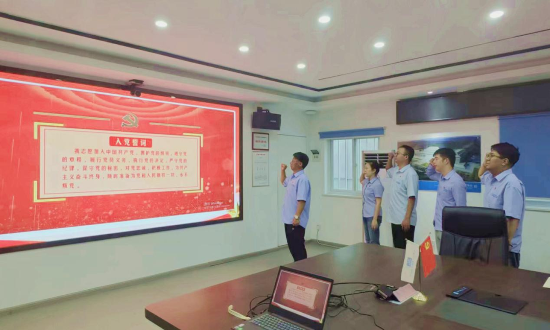 重温誓词,砥砺初心使命。升旗仪式后,项目党支部组织党员同志重温入党誓词。党员们紧握右拳,铿锵有力的誓言在项目会议室回荡,表达了为党的事业奋斗终身的坚定信念和为项目建设贡献力量的决心。