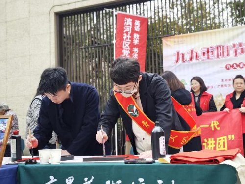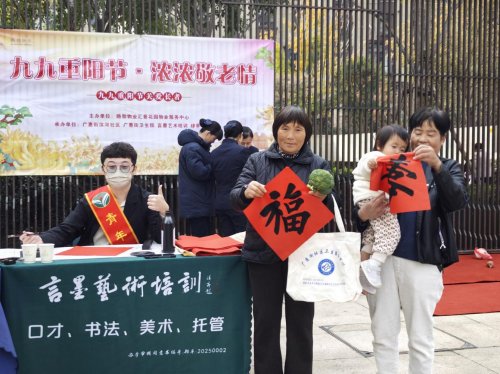 活动现场暖意融融,志愿者与艺术培训老师早早布置好笔墨纸砚,笔墨香与欢声笑语交织在一起。“福寿康宁”“松龄鹤寿”“福如东海”等寓意吉祥的作品在志愿者与老师的笔下应运而生,笔锋遒劲有力,墨香沁人心脾,每一个字都承载着对老人们健康长寿、幸福安康的美好祝愿。此外,志愿者们还与老人们亲切交谈,拉家常、问近况,详细了解老人们的生活起居和健康状况,叮嘱他们注意秋冬季节保暖和日常安全。一句句暖心的问候、一声声真诚的关怀,让老人们感受到了来自社会的温暖与关爱,也让青年志愿者们在实践中体会到了传统美德的深刻内涵。